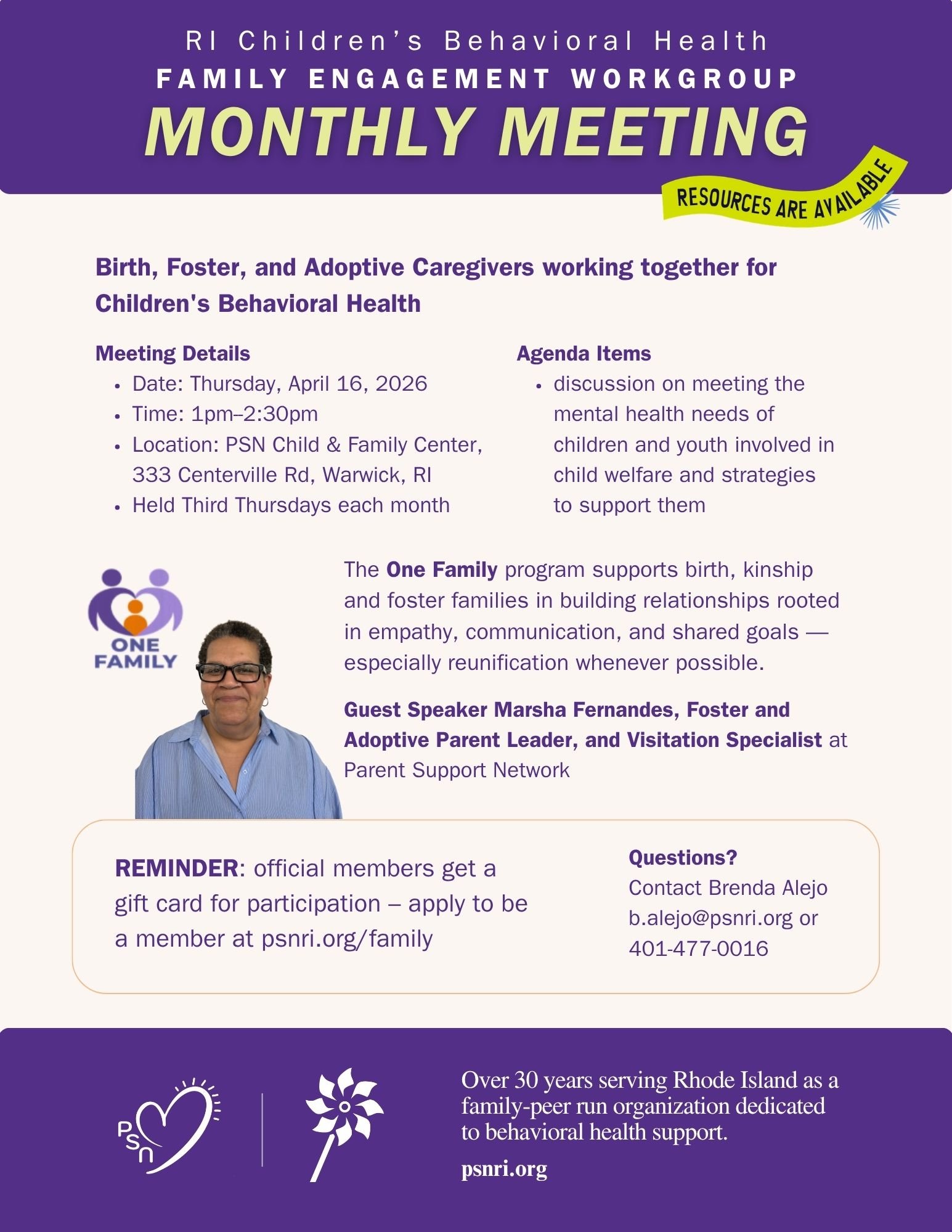 Contact Brenda Alejo at 401-477-0016 or b.alejo@psnri.org with questions. Childcare and transportation can be coordinated.